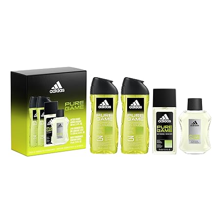 adidas Pure Game 4 Piece Gift Set, Notes of Grapefruit, Lavender, and Sandalwood, Men's Fragrance, Long Lasting, Sporty Fragrance