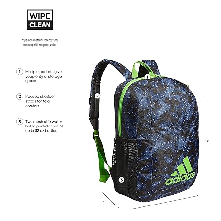 Thông tin sản phẩm adidas Ready Small Backpack for Women and Men, Durable Laptop Bag for Work, Galaxy Camo Dark Blue/Lucid Lime Green, One Size