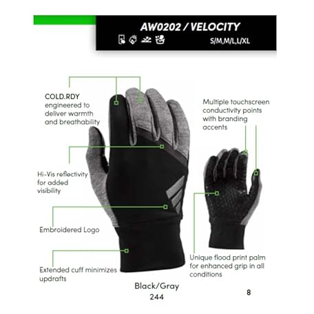 • adidas Winter Performance VELOCITY Running Reflective Gloves, Black/Gray