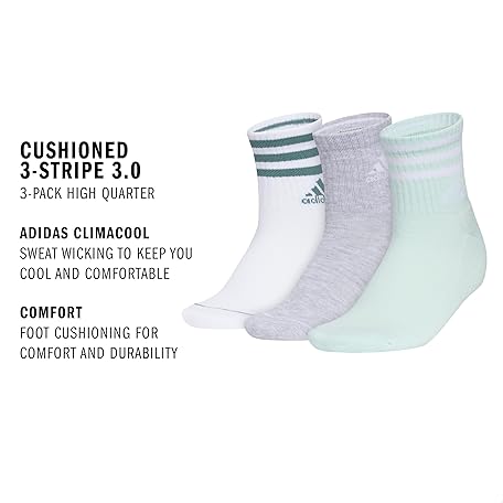 • adidas Womens 3-Stripe High Quarter Socks (3-Pair) with arch compression for a secure fit