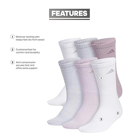 Thông tin sản phẩm adidas womens Athletic Cushioned Crew Socks With Arch Support, 6-pack, Durable, Moisture-wicking