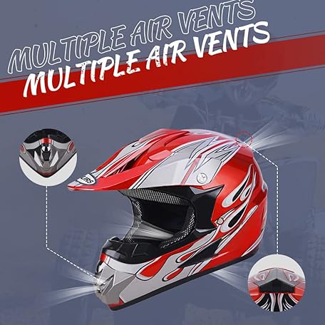 Sản phẩm Adult Motocross Dirt Bike Helmet with Goggle, Gloves & Mask - DOT/FMVSS-218 Off-Road Motorcycle & ATV Helmet with Adjustable Sun Visor đang được bán với giá ưu đãi là $61.912 tại nước Mỹ.