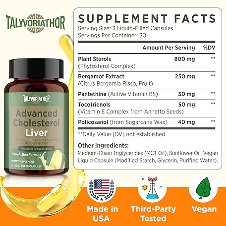 Advanced Cholesterol Lowering Supplements & for High Cholesterol | Liquid-Filled Capsules for Maximum Absorption | Plant Sterols, Policosanol, Bergamot Extract | Triple-Action Formula,90 Capsules