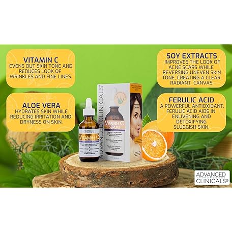 Thông tin sản phẩm Advanced Clinicals Brightening Vitamin C Serum For Face With Glycolic Acid + Lactic Acid | Vitamin C Eye Serum Face Moisturizer For Improving Look Of Dark Spots & Uneven Complexion, 1.75 Fl Oz