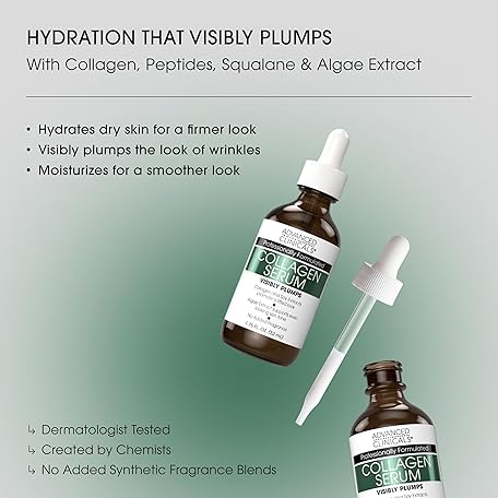 Thông tin sản phẩm Advanced Clinicals Collagen Serum For Face | Visible Anti Aging Collagen Peptide Serum + Hyaluronic Acid Moisturizer Improves Look Of Wrinkles, Dry Skin, & Fine Lines, No added Fragrance, 1.75 Fl Oz