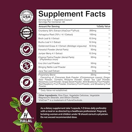 Thông tin sản phẩm Advanced Kidney Support Supplement - Kidney Cleanse Detox & Repair Cranberry Extract Capsules with Uva Ursi, Stinging Nettle & Astragalus for Kidney health - Urinary Tract Health - 60 Caps