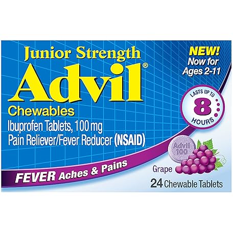 Sản phẩm Advil Junior Strength Chewable Ibuprofen Pain Reliever and Fever Reducer, Children's Ibuprofen for Pain Relief, Grape - 24 Tablets (Pack of 3) đang được bán với giá ưu đãi là $15.4126 tại nước Mỹ.