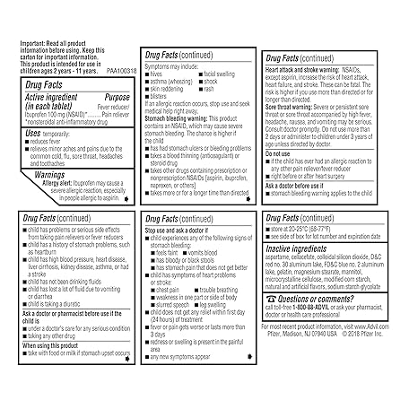 Thông tin sản phẩm Advil Junior Strength Chewable Ibuprofen Pain Reliever and Fever Reducer, Children's Ibuprofen for Pain Relief, Grape - 24 Tablets (Pack of 3)
