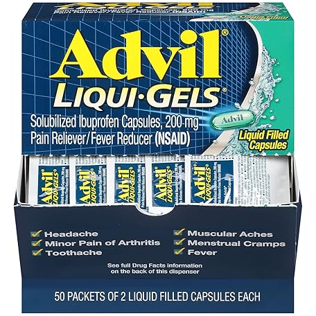 Sản phẩm Advil Liqui-Gels Pain Reliever/Fever Reducer, Solubilized Ibuprofen 200mg, 2/Packet, 50 Packets/Box (016902) đang được bán với giá ưu đãi là $25.7785 tại nước Mỹ.