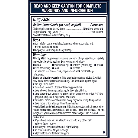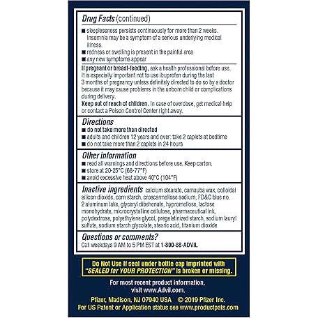 Thông tin sản phẩm Advil PM Pain Reliever and Nighttime Sleep Aid, Ibuprofen for Pain Relief and Diphenhydramine Citrate for a Sleep Aid - 120 Coated Caplets and Pain Reliever and Fever Reducer, 10 Count Tablets