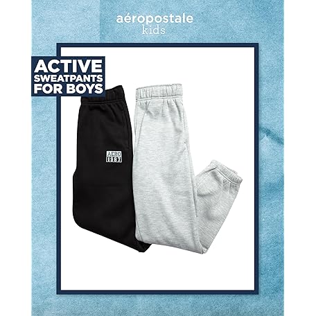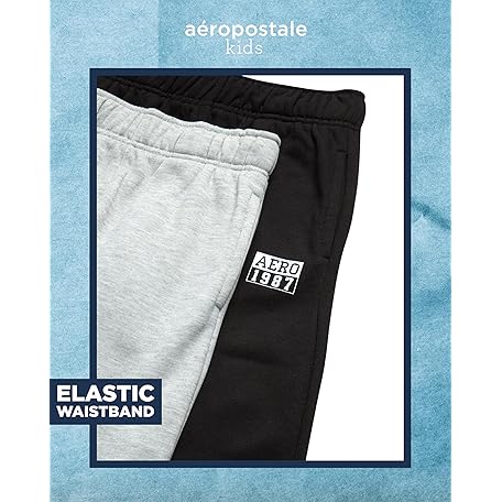 • AEROPOSTALE Boys Sweatpants - 2 Pack Performance Fleece Boys Joggers with Side Pockets - Cozy Athletic Kids Pants (Size 8-16)