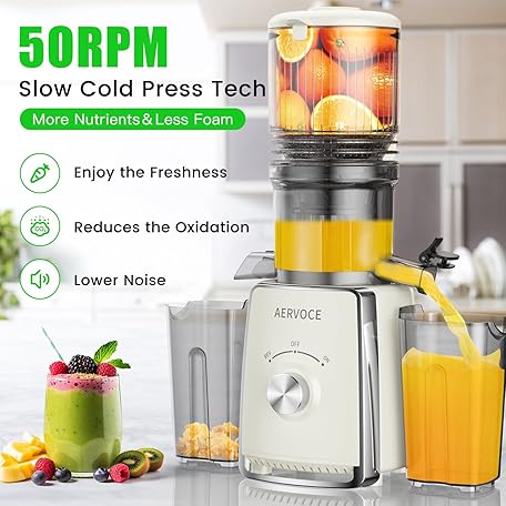 AERVOCE Cold Press Juicer Machines - Masticating Juicer Machines With 5.3'' Large Feed Chute,300W High Juice Yield,800ml Two Cups, Slow Juicers Extractor Easy To Clean