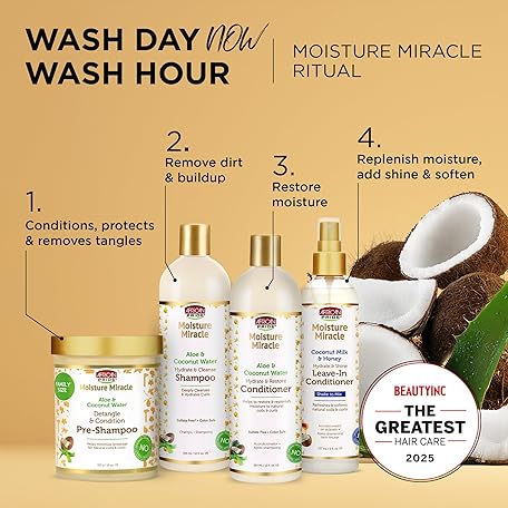 Thông tin sản phẩm African Pride Moisture Miracle Pre-Shampoo Hair Detangler with Aloe & Coconut Water | Minimizes Breakage, Hydrates & Strengthens | Pre-Poo Treatment for Natural Coils & Curls | 18 oz.