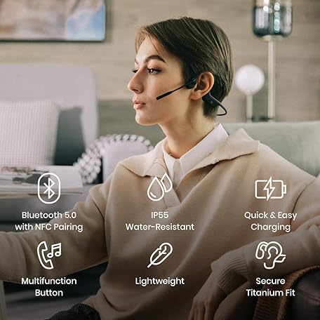 Thông tin sản phẩm Aftershokz OpenComm (Rebranded as Shokz OpenComm) Wireless Stereo Bone Conduction Bluetooth Headset with Noise-Canceling Boom Microphone for Office Home Business Trucker Drivers Commercial Use, Black