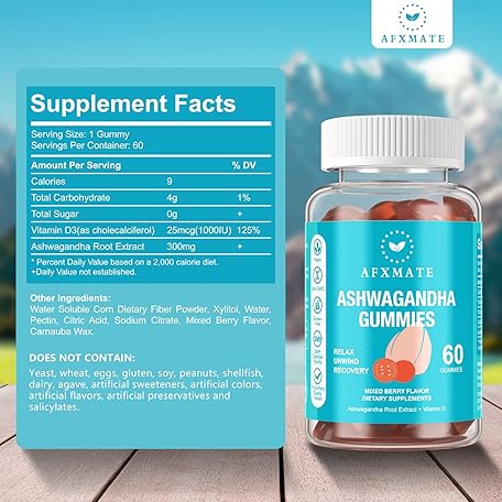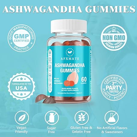 Sản phẩm AFXMATE Ashwagandha Gummies & Vitamin D Gummies for Men & Women 120 Count Aswangdha Supplement (Non-GMO, Sugar Free & Gluten Free) đang được bán với giá ưu đãi là $25.0155 tại nước Mỹ.