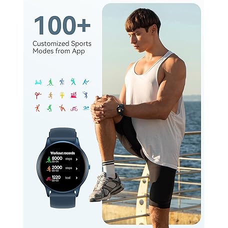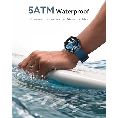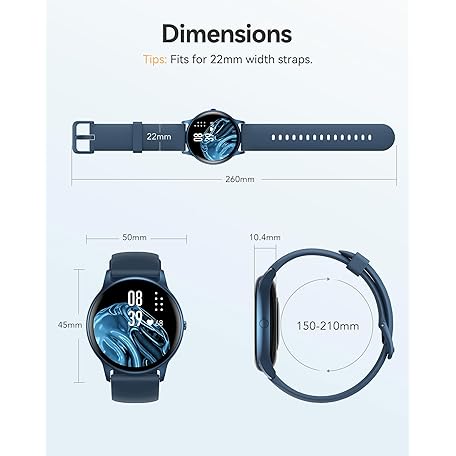 Thông tin sản phẩm AGPTEK Smart Watch for Women Men, 5ATM Waterproof Smartwatch for Android and iOS Phones, Fitness Tracker Watch with 100+ Sports Modes, Heart Rate Monitor Pedometer Sleep Monitor, Blue