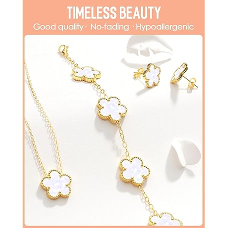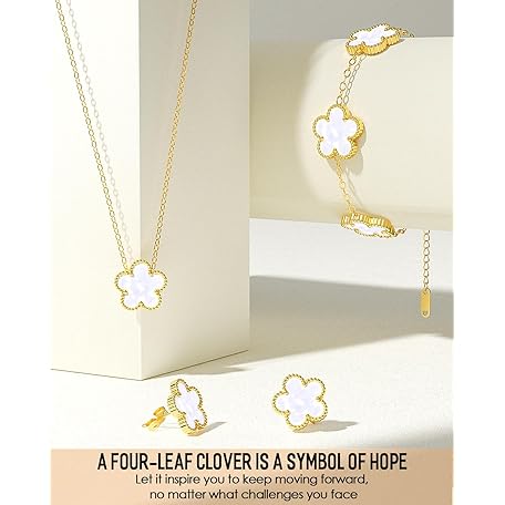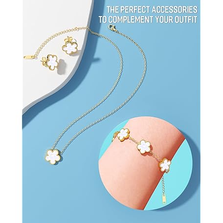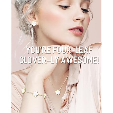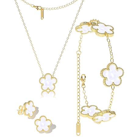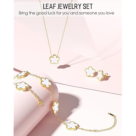 AICase Clover Jewelry Set,18K Gold Plated Lucky Clover Bracelet,Four Leaf Clover Necklace and Clover Earrings Fashion Jewelry Sets Gifts for Women/Mon