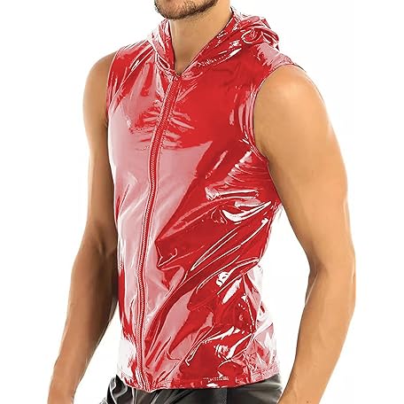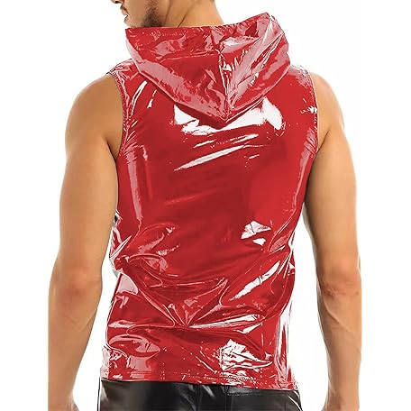 • AIEOE Men’s Leather Metallic Shirts Shiny Slim Fit Stretch Top Wetlook Club Party Undershirts