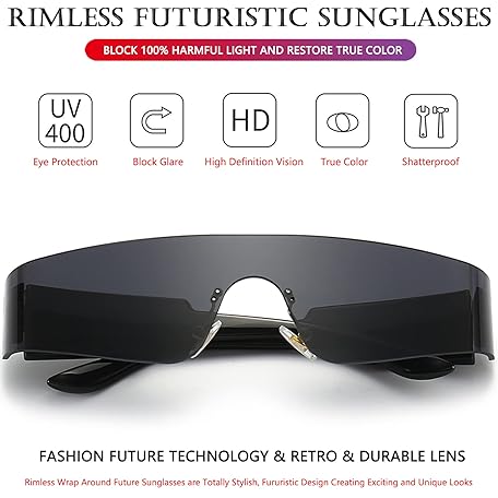 Sản phẩm AIEYEZO Modern Fashion Rimless Futuristic Wrap Around Sunglasses Women Men Cyberpunk Visor Sun Glasses Trendy Future Shades đang được bán với giá ưu đãi là $14.1591 tại nước Mỹ.