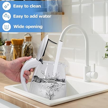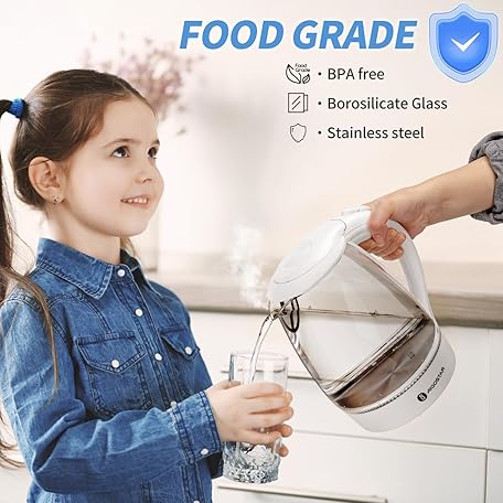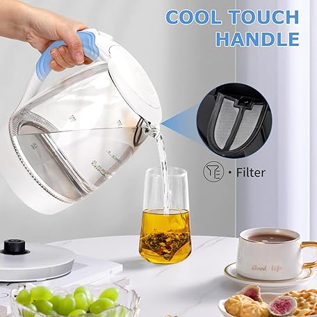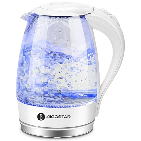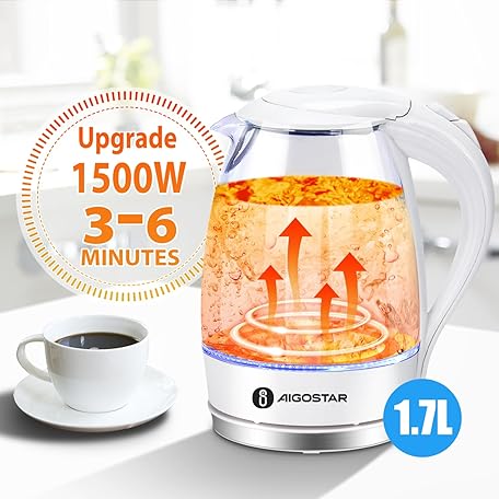 Thông tin sản phẩm Aigostar Electric Kettle, 1500W Glass Electric Tea Kettle Rapid Heating, Borosilicate Glass, Auto Shutoff and Boil-Dry Protection, Hot Water Boiler BPA Free and Cordless with LED Indicator, 1.7 Liter