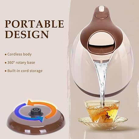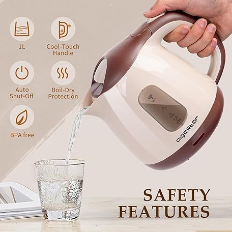 Thông tin sản phẩm Aigostar Small Electric Kettle, 1L Portable Electric Tea Kettle 1100W with Automatic Shut-Off and Boil Dry Protection, Travel Hot Water Boiler Cordless for Making Coffee and Tea, BPA-Free, Brown
