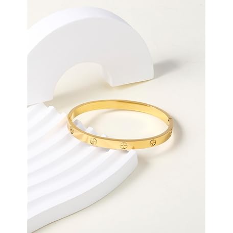 Sản phẩm AILPIWE Gold Bangle Bracelets for Women 18K Gold Plated Stainless Steel Love Bangle Bracelet for Women Men đang được bán với giá ưu đãi là $15.2491 tại nước Mỹ.