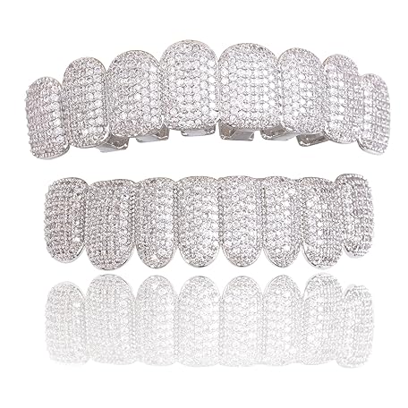 AINTTBY Gold Teeth Grillz Hip Hop Punk Style Copper Plated 18K Gold Inlaid Gorgeous shine Zircon Teeth Grilz Grills Orthodontics Halloween Night Party Shining Choice Numerous zircons