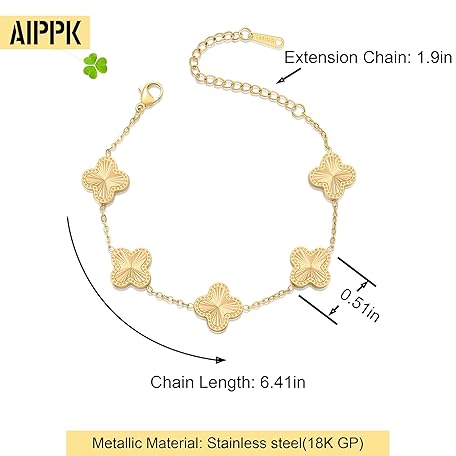 Thương hiệu AIPPK là cái tên nổi tiếng được rất nhiều khách hàng trên thế giới chọn lựa. Với kiểu dáng đẹp mắt, sang trọng, sản phẩm AIPPK 18K Gold Plated Clover Bracelet Dupes Gold Lucky Bracelet for Women Flower Four Leaf Bracelets Danity Jewelry Gifts for Women là sự lựa chọn hoàn hảo nếu bạn đang tìm mua một món cho riêng mình.