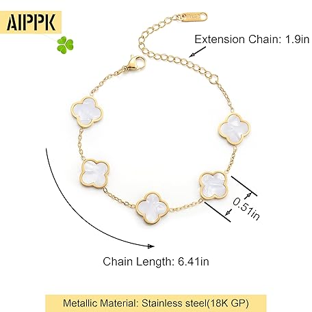 Thương hiệu AIPPK là cái tên nổi tiếng được rất nhiều khách hàng trên thế giới chọn lựa. Với kiểu dáng đẹp mắt, sang trọng, sản phẩm AIPPK 18K Gold Plated Clover Lucky Bracelet for Women White/Black/Red/Green Flower Four Leaf Link Bracelets Trendy Jewelry Gifts for Women là sự lựa chọn hoàn hảo nếu bạn đang tìm mua một món cho riêng mình.