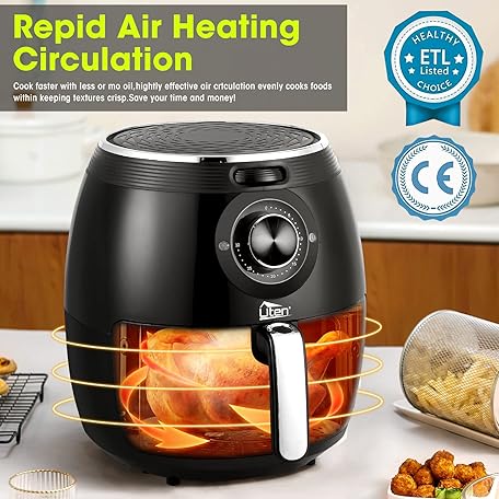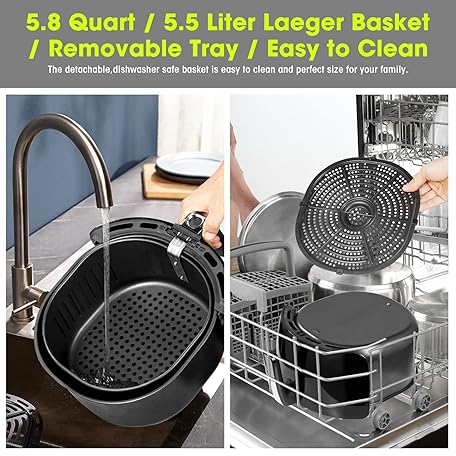 Thông tin sản phẩm Air Fryer 5.8QT/5.5L, Uten 1700W AirFryer High-Power Electric Hot Temperature Control & Timer Knob, Non Stick Fry Basket, Dishwasher Safe, Apply to Party, Afternoon Tea, Black