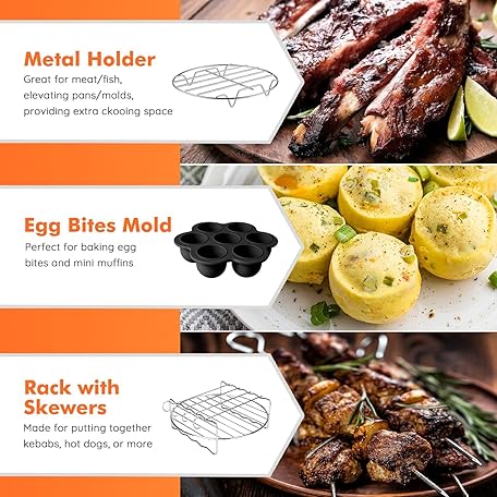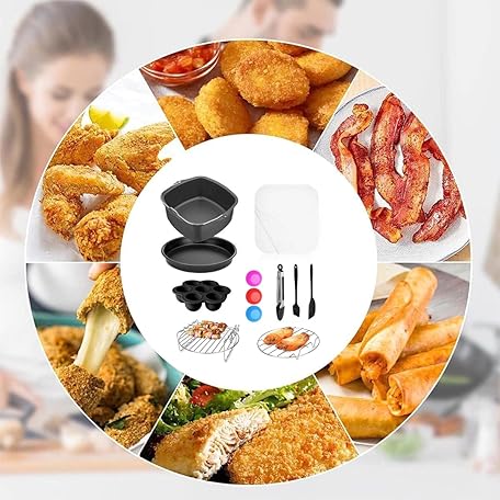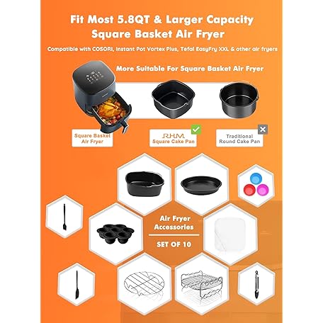 Thông tin sản phẩm Air Fryer Accessories for Cosori, 10 Piece Square Accessories for COSORI 5.8 QT 6.0 QT, Instant Vortex Plus 6QT and Larger Air Fryers, Including Cake & Pizza Pan, Rack & Skewer, Egg Bite Mold, etc.