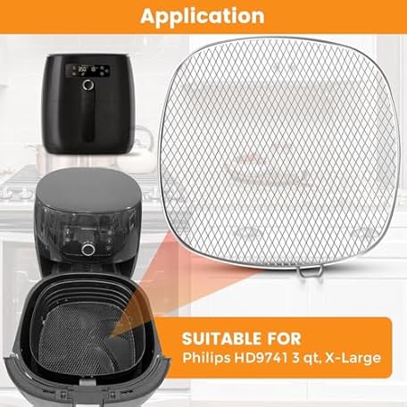 Thông tin sản phẩm Air Fryer Accessories for Philips, 7.2” Square Drip Pan for Philips HD9741 3QT Tray Rack Compatible with HD9641 HD9721, HD9730, Dishwasher Safe