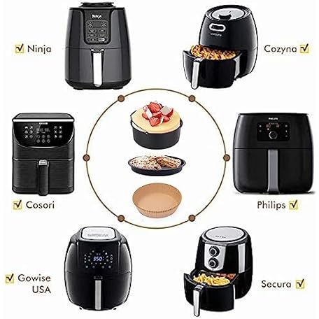 Thông tin sản phẩm Air Fryer Accessories,7 inch Cake Barrel,Pizza Pan,50 Pcs Baking Paper and Silicone Brush for Ninja Gowise Cosori Phillips Cozyna Gourmia Zeny,