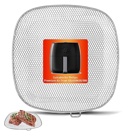 Thông tin sản phẩm Air Fryer Basket Replacement for Philips HD9630 3lb/4qt Airfryer XXL, 9”×8.6” SUS 304 Stainless Steel Air Fryer XXL Accessories Replacement Parts Tray for Philips HD9656 HD9760 HD9860 Air Fryer