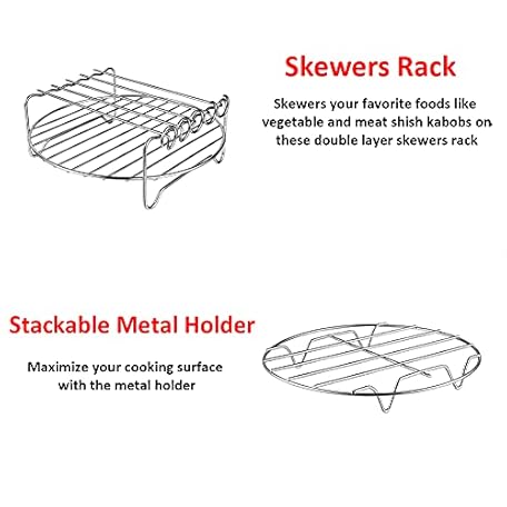 Thông tin sản phẩm Air Fryer Rack XL Air Fryer Accessories Set of 2, Double Layer Rack with Skewer, Stackable Metal Holder