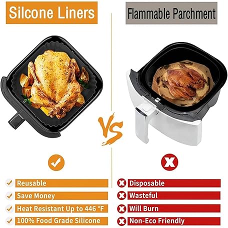 Thông tin sản phẩm Air Fryer Silicone Liners for Ninja AF140 AF141 AF180 AF181 Air Fryer for Philips HD9270 Basket Baking,9inch Reusable square,Black×2 pack