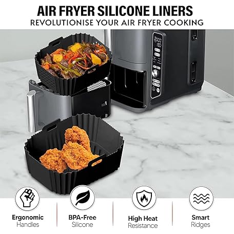 Sản phẩm Air Fryer Silicone Liners for Ninja AF140 AF141 AF180 AF181 Air Fryer for Philips HD9270 Basket Baking,9inch Reusable square,Black×2 pack đang được bán với giá ưu đãi là $14.7041 tại nước Mỹ.