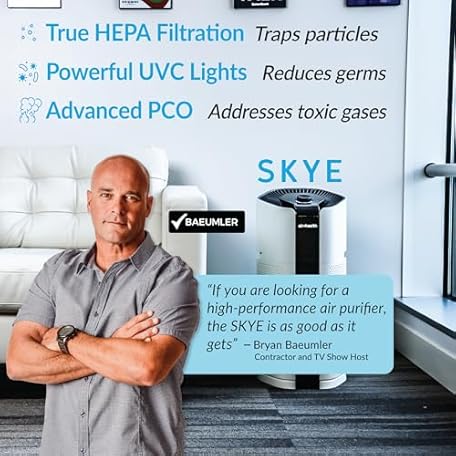 Thông tin sản phẩm Air Health Skye 5 Stage Air Purifier, Features Ultraviolet Light (UVC), H13 True Hepa, Carbon, PCO, Smart Wifi, Auto Mode, Quiet, Removes 99.97% of Particles, Smoke, Mold, Pet Dander, Dust, Odors