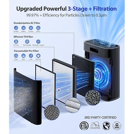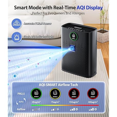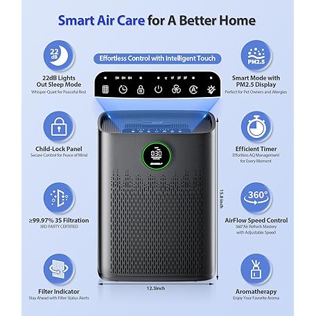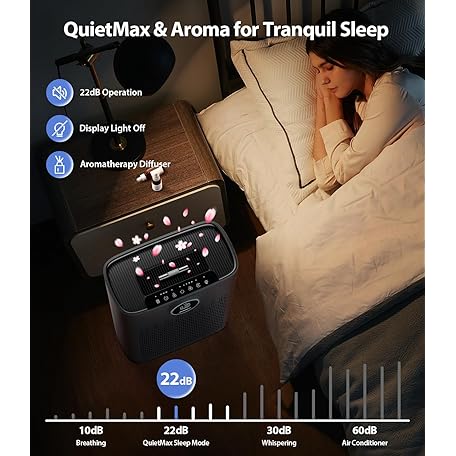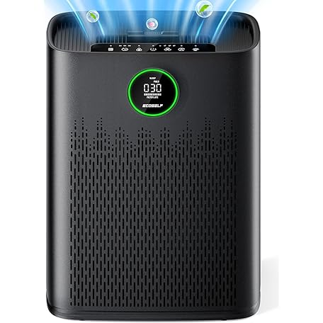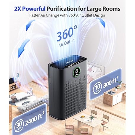Air Purifiers for Home Large Room, Cover Up to 2400 Ft² with True HEPA Filter, Smart Mode, PM2.5 Air Quality Display, 22dB Sleep Mode, Aromatherapy with 2X-Purification & 360°Air Outlet, HAP603, Black