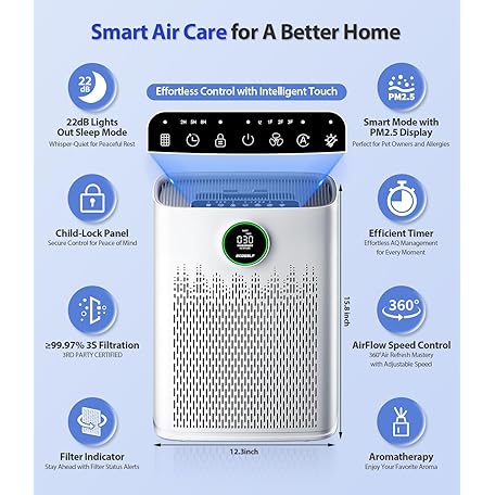 Thông tin sản phẩm Air Purifiers for Home Large Room, Cover Up to 2400 Ft² with True HEPA Filter, Smart Mode, PM2.5 Air Quality Display, 22dB Sleep Mode, Aromatherapy with 2X-Purification & 360°Air Outlet, HAP603, White