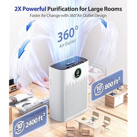 Sản phẩm Air Purifiers for Home Large Room, Cover Up to 2400 Ft² with True HEPA Filter, Smart Mode, PM2.5 Air Quality Display, 22dB Sleep Mode, Aromatherapy with 2X-Purification & 360°Air Outlet, HAP603, White đang được bán với giá ưu đãi là $76.2891 tại nước Mỹ.