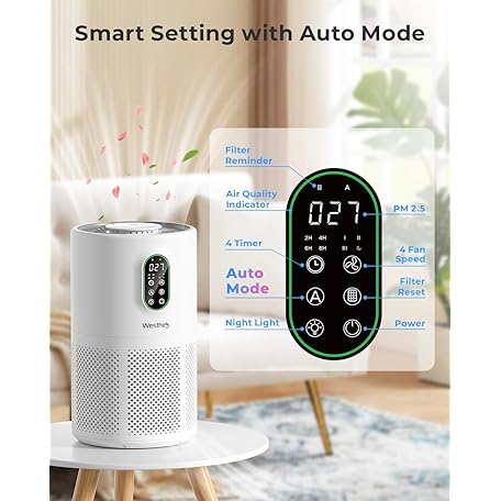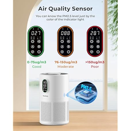 Thông tin sản phẩm Air Purifiers for Home Large Room up to 1650 ft², WESTHEY H13 True HEPA Air Purifier for Bedroom with Night Light, Air Quality Monitor, Fragrance Sponge, Air Cleaner for Wildfire Smoke Dander Dust