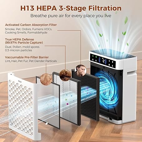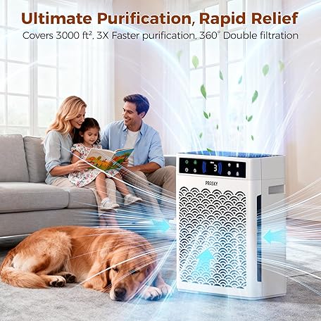 Thông tin sản phẩm Air Purifiers for Home Large Room up to 3000sq.ft, PRASKY HEPA Air Purifier & with Activated Carbon for Office, Bedroom, Dorm Room, Kitchen