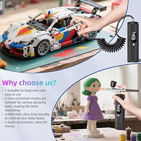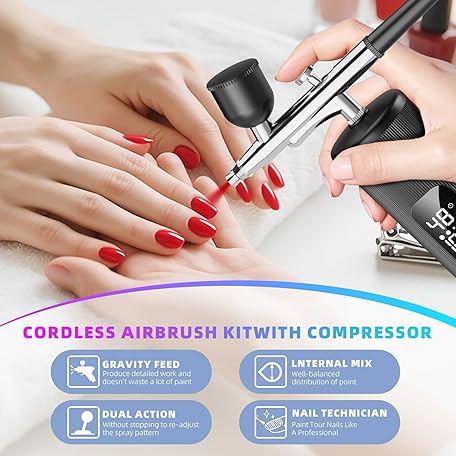 Airbrush Kit with Compressor - 48PSI High Pressure, Non-Clogging Air Brush Set, 6000 mAh Extra Long Standby, Ideal for Painting, Modeling, Cake Decorating, Pastry, Makeup and Nail Art