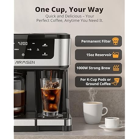 Thương hiệu AIRMSEN là cái tên nổi tiếng được rất nhiều khách hàng trên thế giới chọn lựa. Với kiểu dáng đẹp mắt, sang trọng, sản phẩm AIRMSEN 12-Cup Programmable Dual Coffee Maker – Single Serve Machine for K-Cup Pods & Ground, 1000W Fast Brew, Delay Start, 2H Keep Warm, Touchscreen, 60oz Tank, Glass Carafe – Home & Office là sự lựa chọn hoàn hảo nếu bạn đang tìm mua một món cho riêng mình.