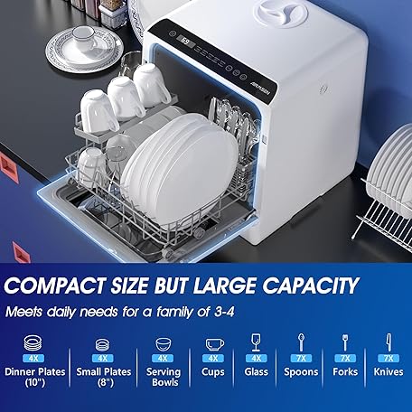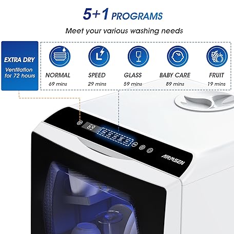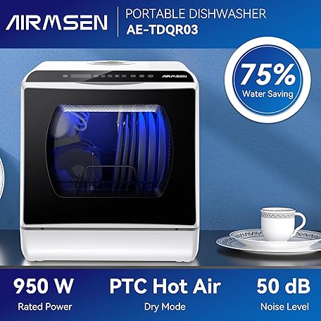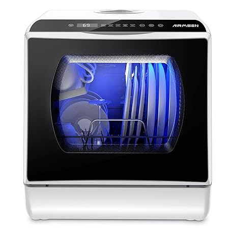 Thông tin sản phẩm AIRMSEN Portable Countertop Dishwashers, 5 Washing Programs Mini Dishwashers with 5 L Built-in Water Tank and Double-layered Glass Door, No Hookup Needed for Home, Apartments & RVs