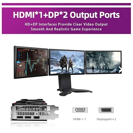 Thông tin sản phẩm AISURIX RX 580 Graphics Card, 2048SP, Real 8GB, GDDR5, 256 Bit, Pc Gaming Video Card, 2XDP, HDMI, PCI Express 3.0 with Freeze Fan Stop for Desktop Computer Gaming Gpu