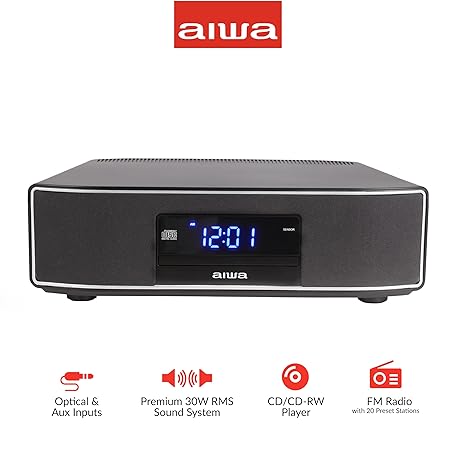 Thông tin sản phẩm AIWA Exos Home Speaker, Premium 30W RMS Sound System with CD Player, Bluetooth Connectivity, FM Radio, Optical Digital Input, Dual 1” Tweeters + Dual 2” Bass Units, IR Remote Control