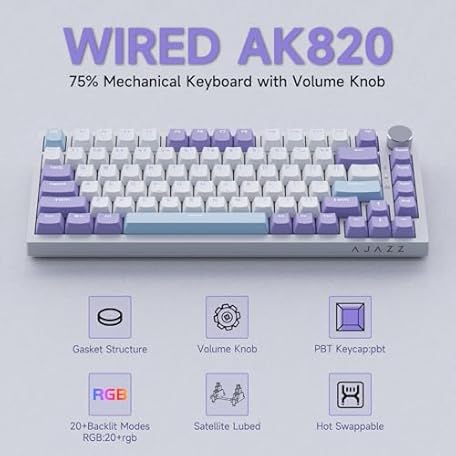 Sản phẩm Ajazz AK820 75% Wired Gasket Mechanical Gaming Keyboard with Volume Knob - South Facing LED - Poron Foam - PBT Keycaps - Programmable RGB Hot Swap Keyboard đang được bán với giá ưu đãi là $36.842 tại nước Mỹ.