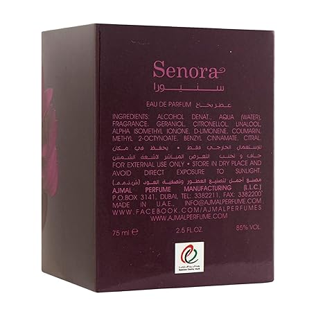 Thông tin sản phẩm Ajmal Senora Eau De Parfum 2.5 Oz / 75 ML Perfume For Women | Elegant Floral-Woody Fragrance with Almond, Orange Blossom & Vanilla Long Lasting Spicy Aromatic Fragrance - Made in Dubai